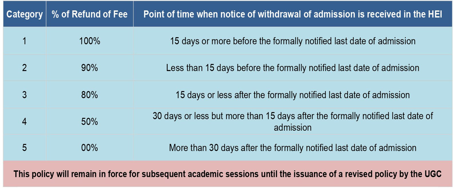 The provisions contained in the UGC Notification issued in October 2018 on Refund of Fees and Non-Retention of Original Certificates are as follows: