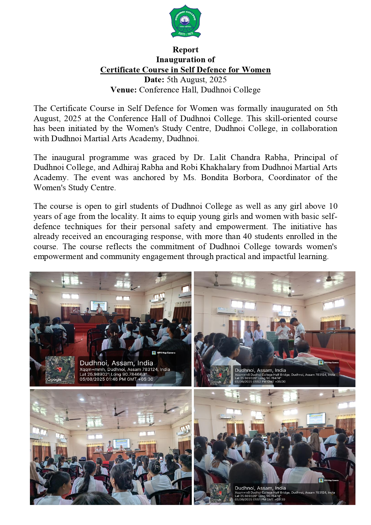 - Inauguration of Certificate Course in Basic Preparation for Civil Services Examination on 28th April, 2025 at Dudhnoi College. View