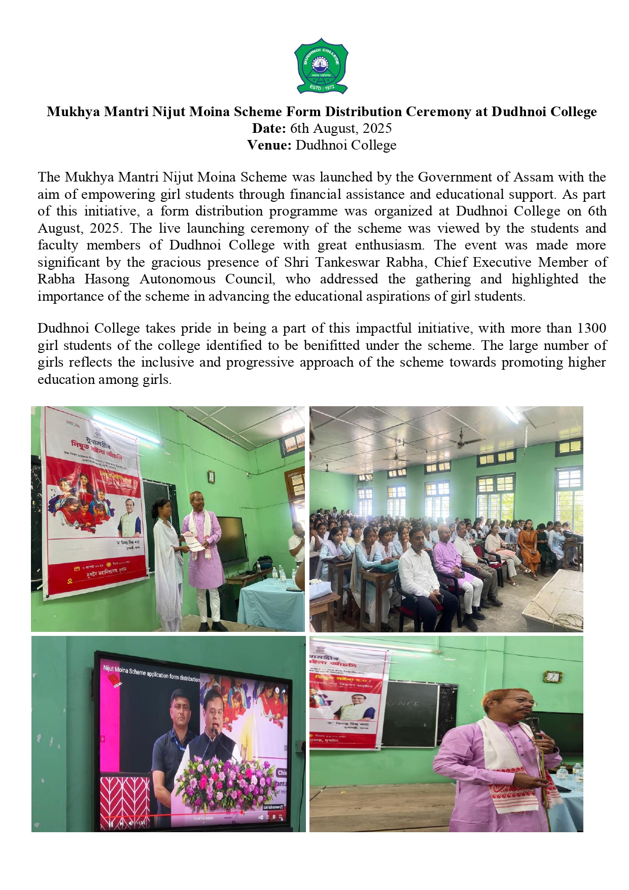 - Nijut Moina Scheme distribution Ceremony at Dudhnoi College View