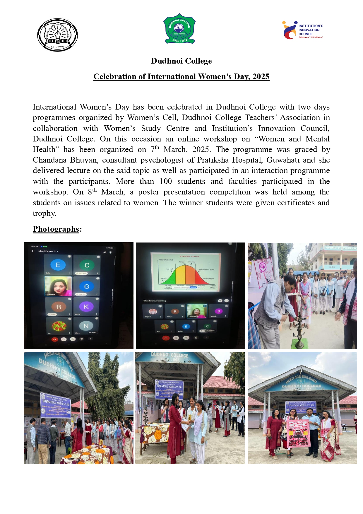Celebration of International Women's Day at Dudhnoi College on 7th & 8th March, 2025